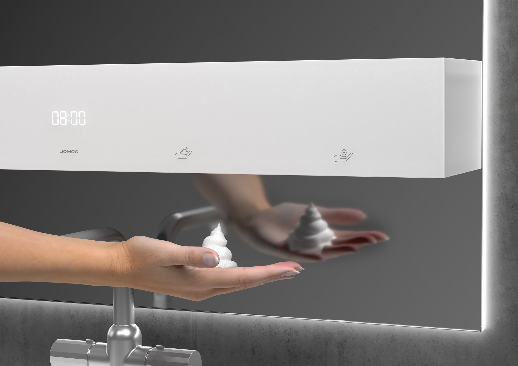 JOMOO Kitchen & Bath Co., Ltd.HUB ist eine kompakte Waschtischkonsole, die mit den wichtigsten Funktionen für die tägliche Badezimmerroutine ausgestattet ist. Die gestiegenen Hygieneanforderungen verändern unsere täglichen Gewohnheiten und die Produkte, die wir zu Hause verwenden, rapide. HUB bietet mit seinen integrierten, sensorgesteuerten Desinfektions- und Seifenspendern eine diskrete Lösung für neue Hygienestandards, die eine berührungslose Nutzung ermöglichen. Ergänzt durch ein kabelloses Ladegerät, Steckdosen, Stauraum und einen Wecker. Das HUB-Modul wird als Einzelprodukt oder in Kombination mit verschiedenen Spiegeln erhältlich sein, um verschiedenen Einbausituationen gerecht zu werden. Darüber hinaus ermöglichen ausgewählte Farben und Materialien eine zusätzliche Individualisierung.