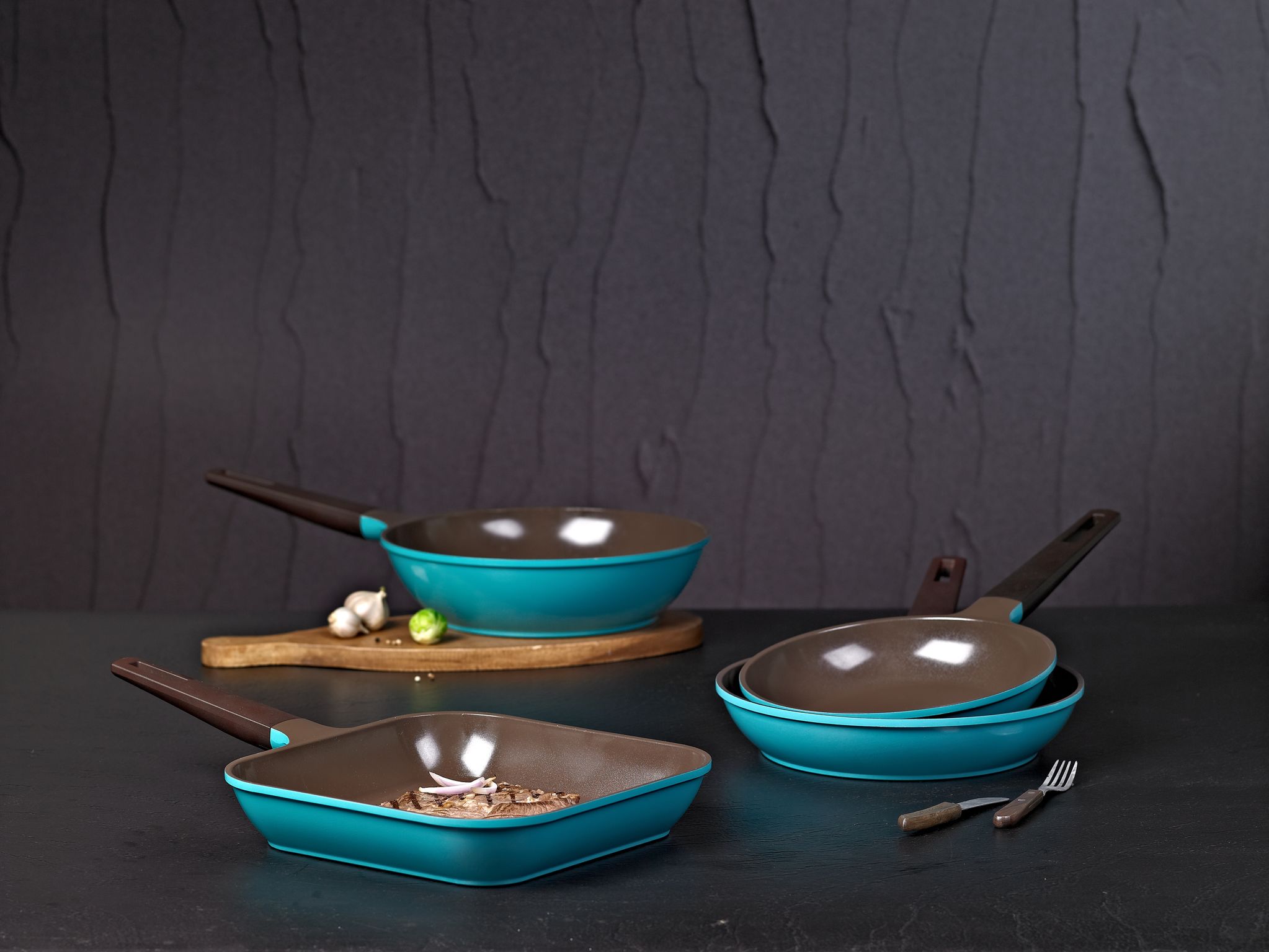 Lock & LockBIRDS cookware accentuates the kitchen and soothes the mind with unique design and soft colors. The body is in natural colors of lime green and bluebird. The handle of lid is in the shape of bird beaks and bird wings. Both are slim and solid for a good grip. The lid stands on its own for easier use. The transparent fortified glass lid makes it easy to check the cooking process. The body is coated with eco-friendly ceramic for a healthy meal. The hard-anodizing process strengthened durability, wear-resistant and corrosion-resistant qualities. BIRDS looks friendly, solid and strong inside, combining excellent design with functionality.