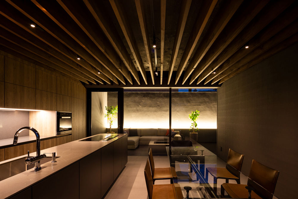 APOLLO Architects & Associates Ltd.This home in a high-density residential district in Tokyo’s suburbs was commissioned by a designer at a large real estate company. The roof and exterior walls are constructed from metallic grey Galvalume which forms both a structural skin and protects the privacy of the residents by shielding the first floor from visibility from the street. A large opening in the roof lets in abundant natural light and makes the compact space feel more expansive.