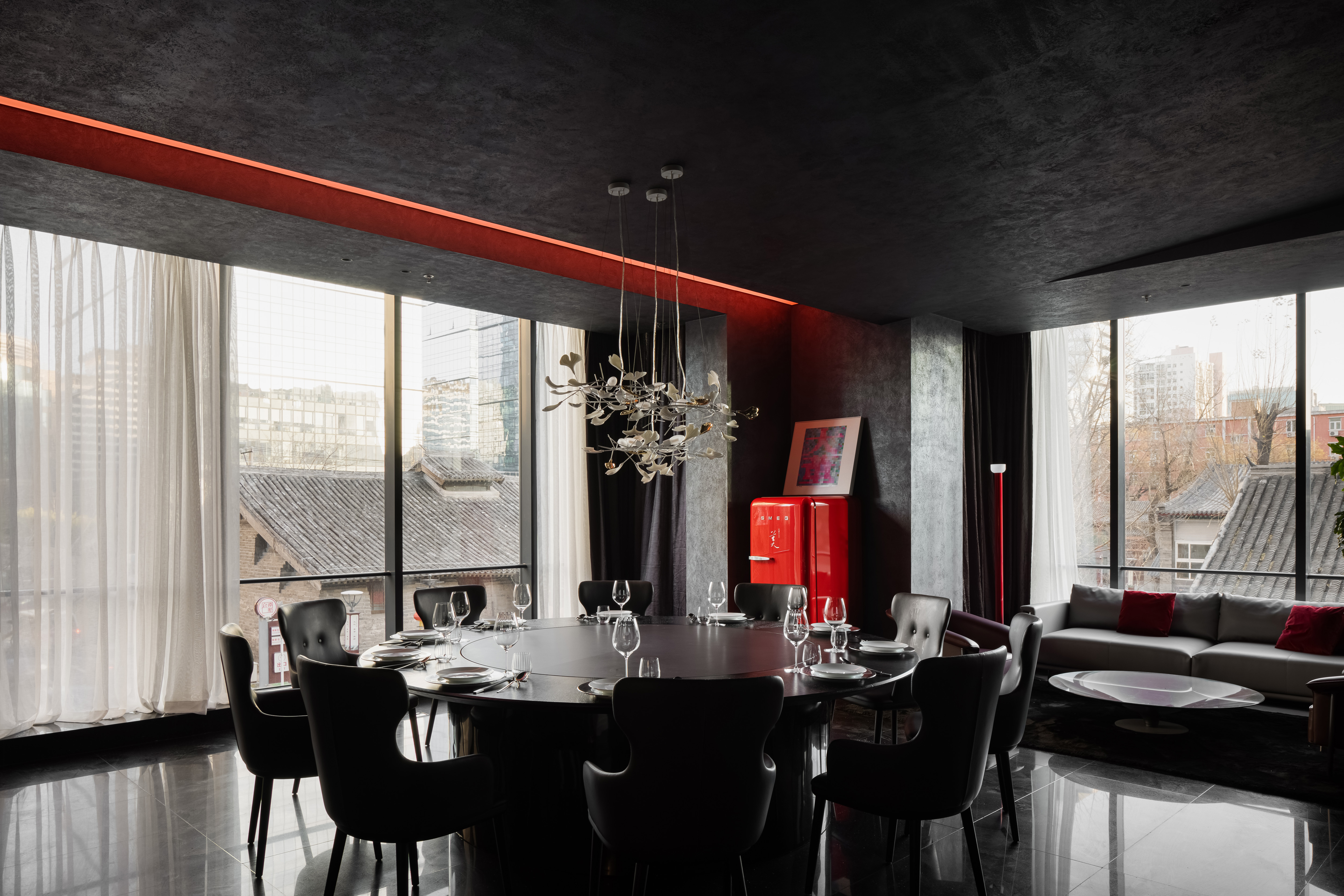 The project is located in Nanxincang, Beijing. The first challenge lays in how to break the stereotype of conventional Chinese restaurants and generate a unique spatial experience. The second challenge lays in how to break dining experiences in conventional Chinese restaurants and produce a leisurely and romantic atmosphere. Light and shadows permeate structural gaps. The light and shadowsmove in the curved hallway space, breaking conventional sedate and dull spatial atmosphere, full of a sense of dynamics and curved beauty.