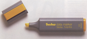 Highlighter for coloured marking specially for computer papers, ink scripts and self-copying-papers.