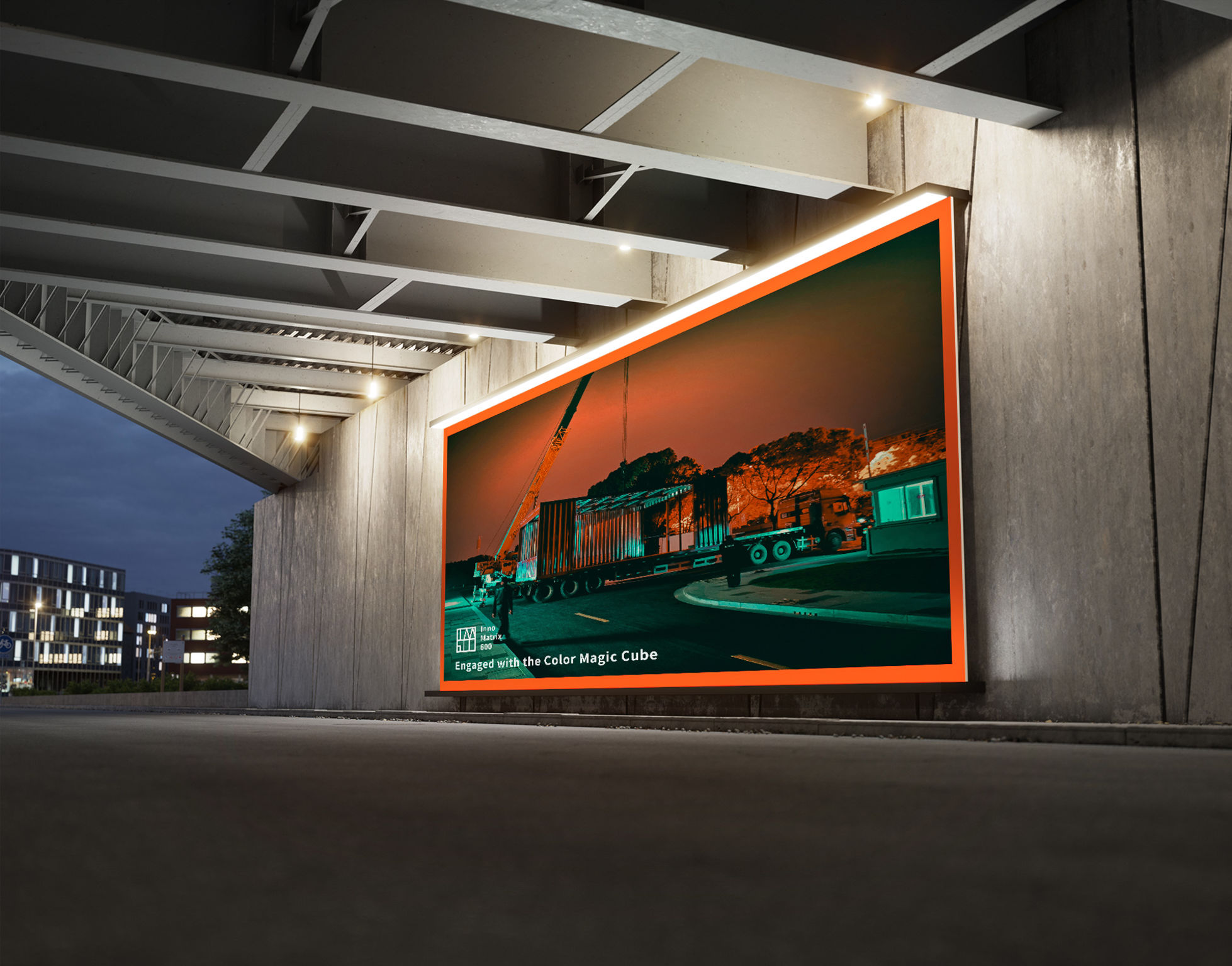 IM600 Campus is a creative office campus located in southwest Shanghai, China. The design theme of IM600 Campus is "Engaged with the Color Magic Cube." All office buildings are built and assembled with modular containers. The logo is a combination of the letters I, m, and the number 600. The key shapes are the rectangle and triangle from the magic cube, which serve as the basic elements for visual three-dimensional design. The two complementary colors of red and green are used to form a strong visual impact. The IM600 Campus poster design presents on-site photos from during the construction phase and uses the brand logo color.
