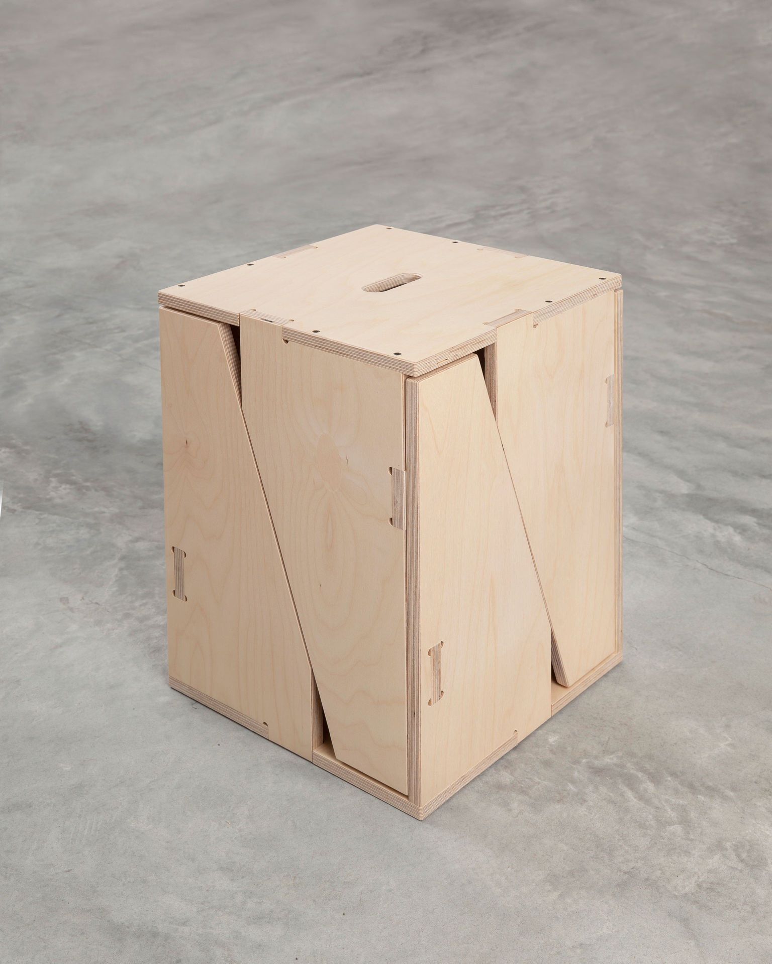 Hoioh DesignIN is a family of stools formed by two pairs of objects born from the ideas of encounter and complementarity. Each pair is made of the same number of elements of the same shape and size. The slight misplacement of the composing parts allows the other to join, forming a single item. The union of the elements creates a space that can contain a smaller identical pair. IN is produced locally using sustainable birch plywood, combining both CNC technology and hand finishing. The product has been developed as a flat-pack with self-assembly in mind. That makes the customer become involved in its construction and allows them to fully appreciate its structure.