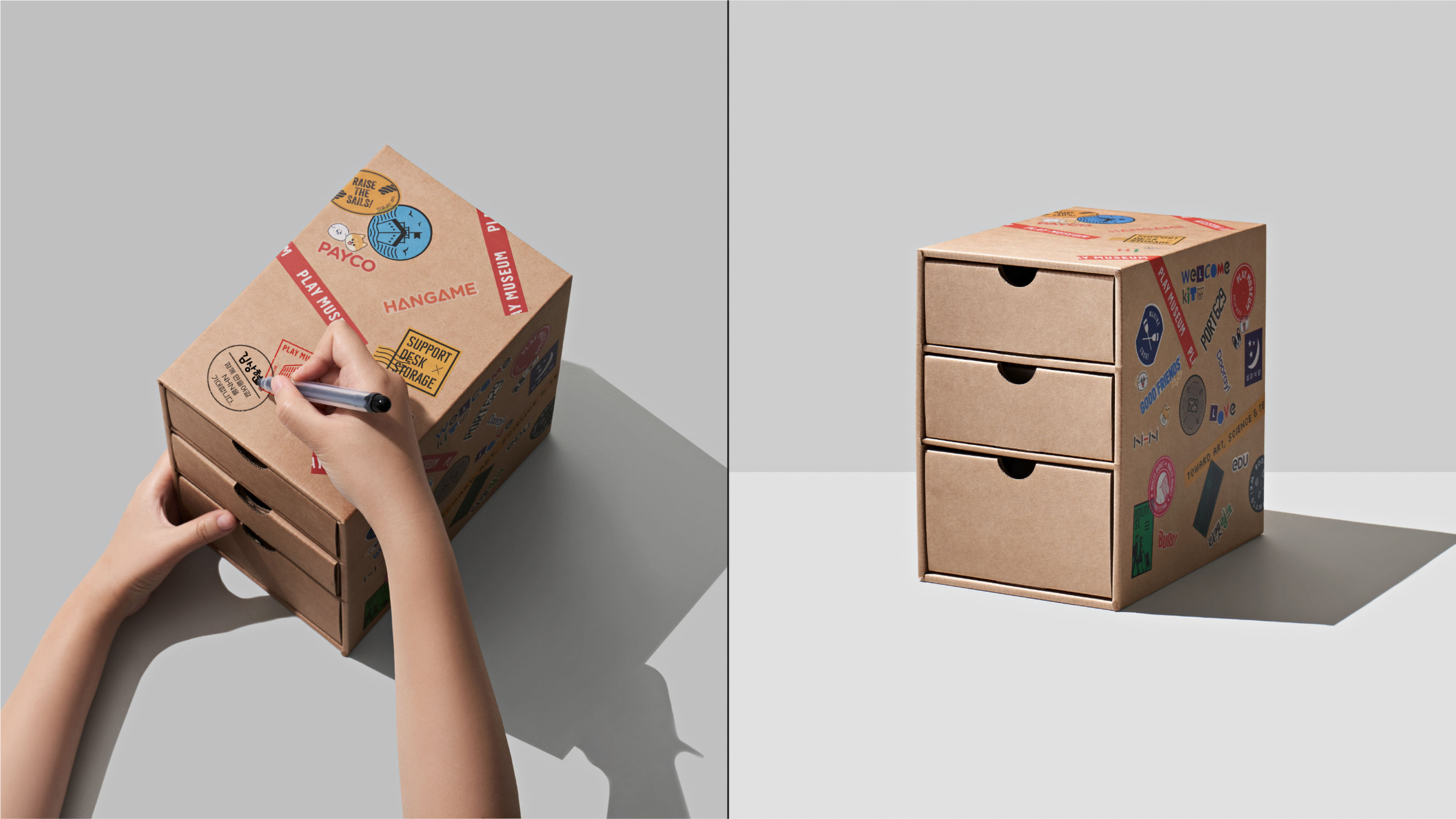 NHNNHN created a Welcome Kit to present the Play Museum to new hires who worked from home during the pandemic and are only now discovering their actual workplace. The uniqueness of the Play Museum is reproduced as a partially coated package that can be reused as a drawer and bookshelf. NHN’s approach to work is expressed in five keywords that are used consistently in the kit's graphic design. Play Museum’s signage is reinterpreted as stickers on the package exterior, along with "alphabet stickers" of NHN’s brand logos. The kit is designed to help new hires better understand NHN’s company culture and business.