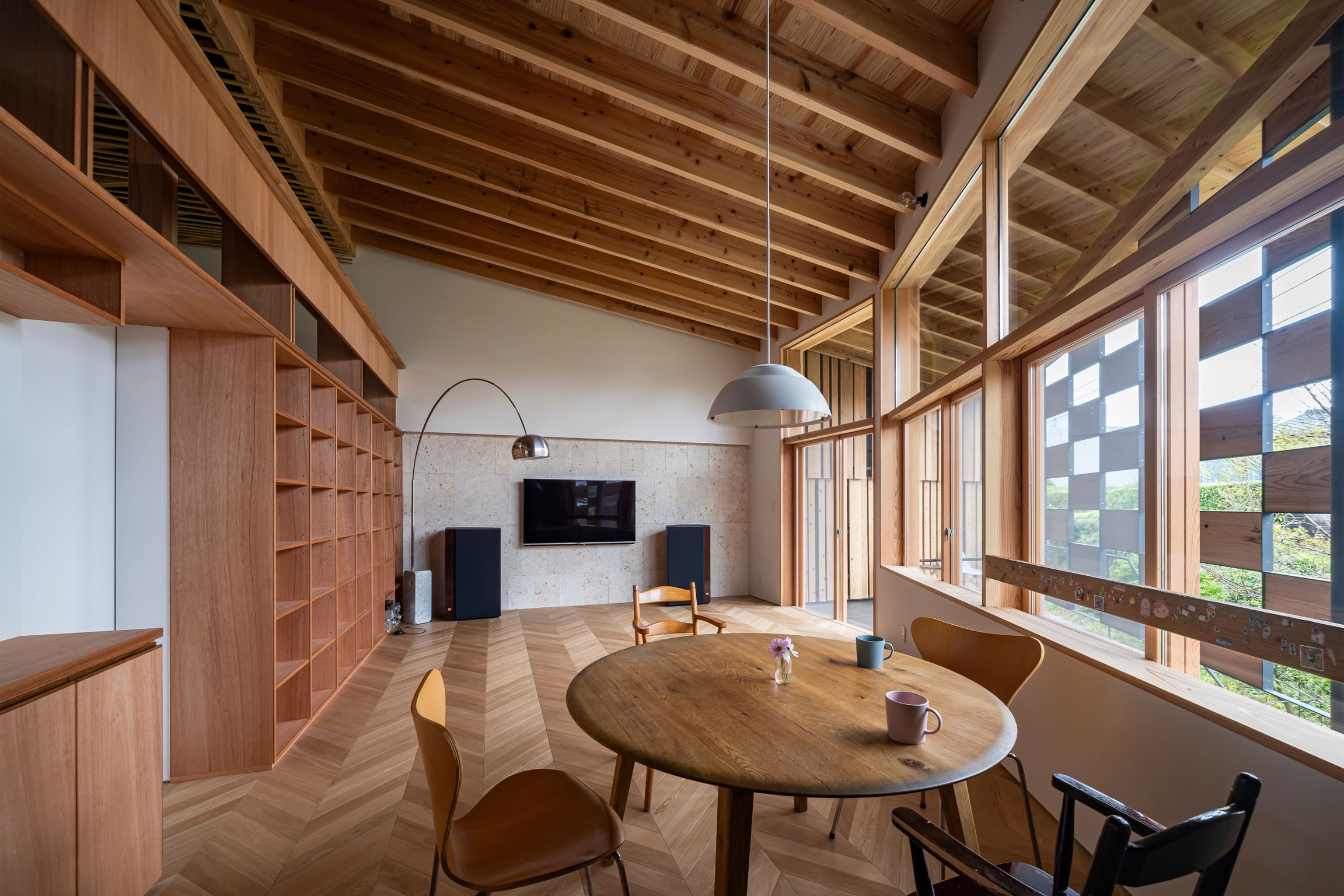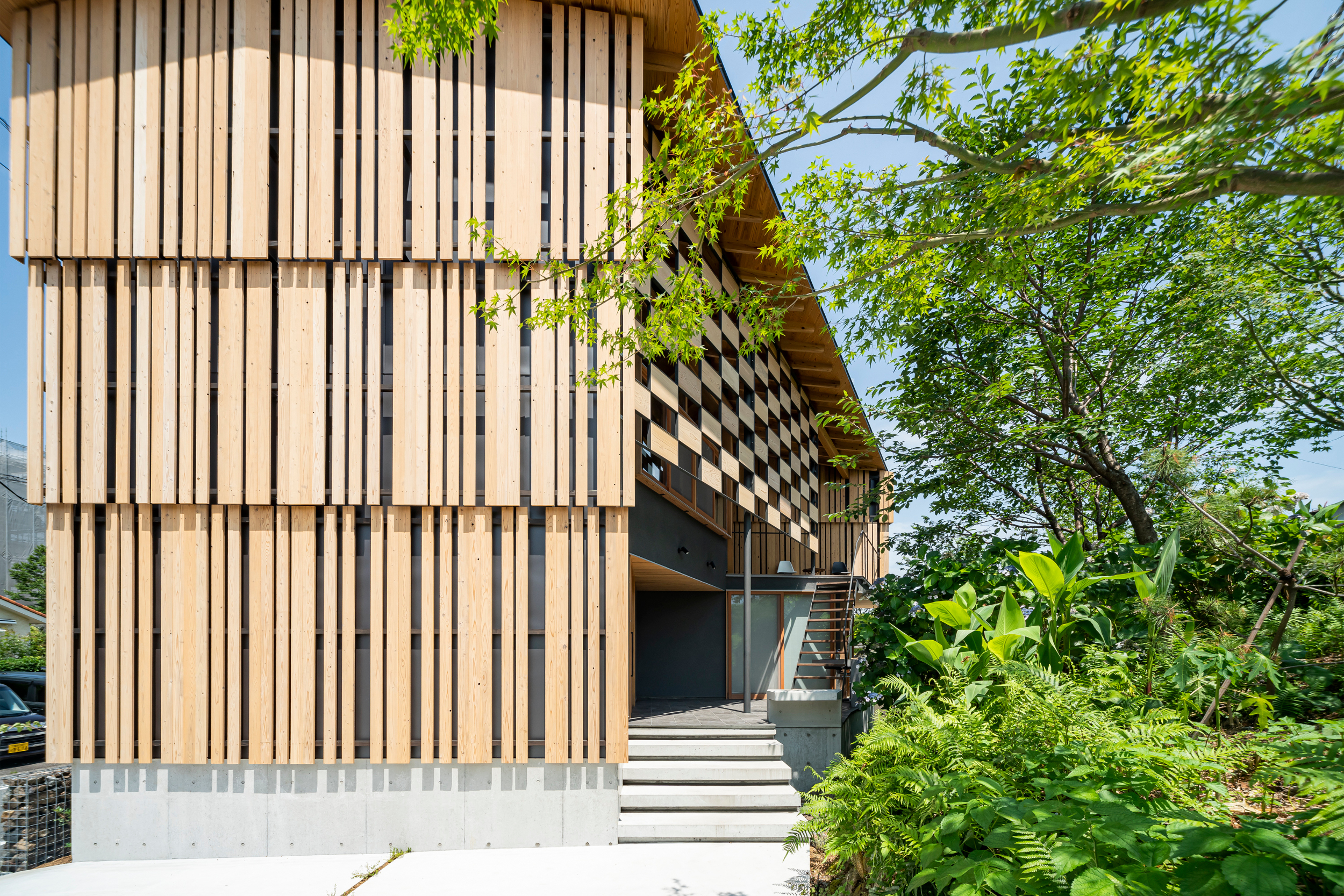 kiriko design officeThe land was an ideal spot that matched the lifestyle of the owners who wished to feel closer to nature while remaining in the town. Considering the situation where the building can be seen from all the directions, a facade used a doubled skin to hide the windows or unnecessary lines over the house and also to improve the insulation performance for heat and solar shading. Regarding the internal structure, the architects asked what should be done so that the lush environment outside the site can be felt as part of the users' daily life? And how can they relax comfortably semi-outdoors?
