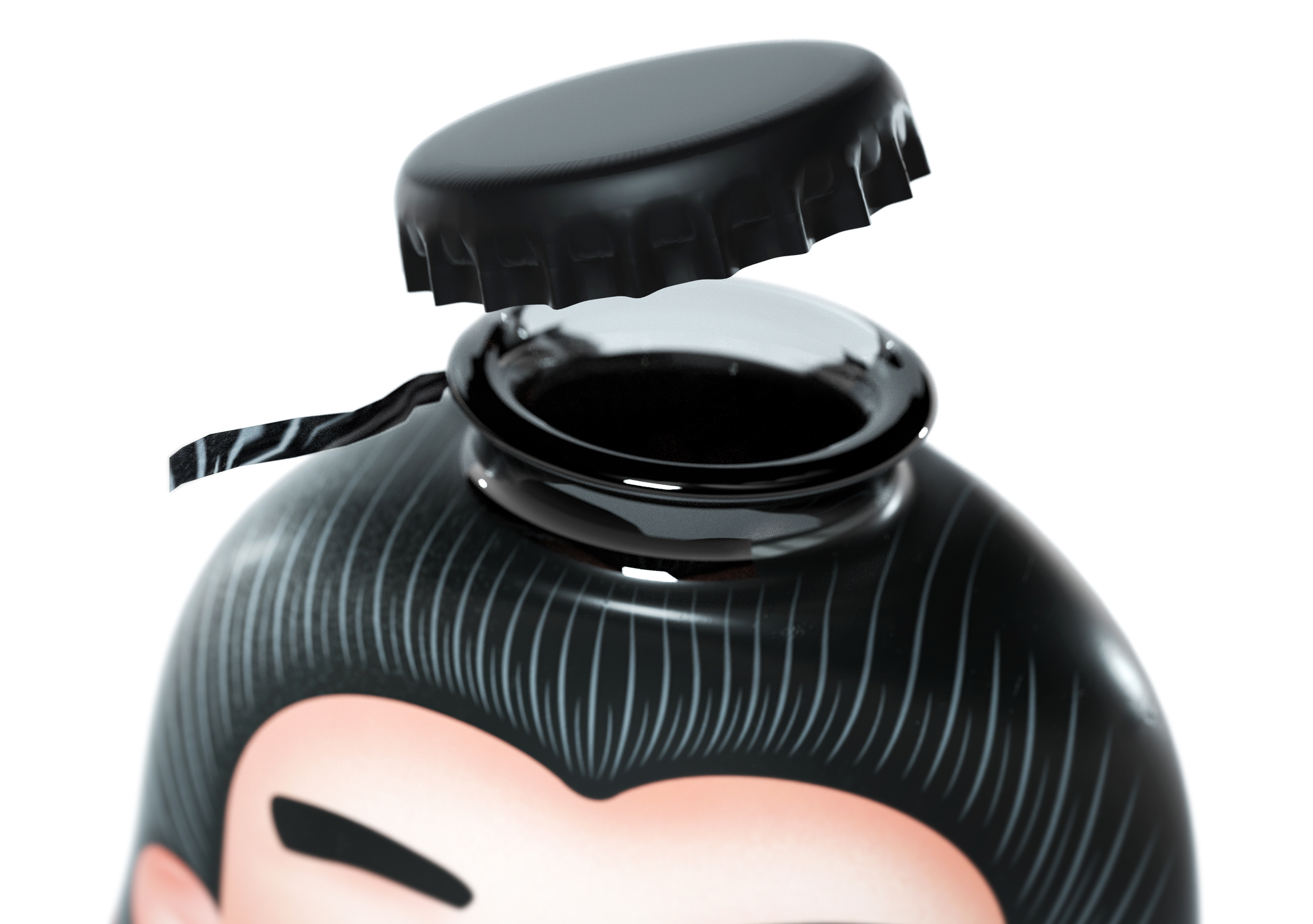 Baijiu is a kind of Chinese liquor in a small bottle. Like in the West, Chinese people also believe in gods, but have different words to call them, such as “Xian" (the Immortal). The product is named Little Immortal. In a Chinese language context, while reducing the seriousness of a god’s image, the friendly name signifies a sense of closeness to people. Heat-shrink matte wrap is used to cover the entire bottle, including the cap. After the process, the image of an adorable immortal will appear. His posture and flushed cheek signify the nature of the product. The shape of the container looks like a tumbler, a hint that Baijiu is a high-quality liquor that does not make one drunk.